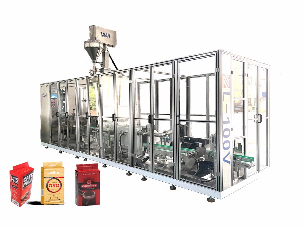 Kumuha ng bag mula sa serye ng VFZ: vertical form fill & seal machine - Mag-vibrate ang bag - Bumuo ng hugis ng bag - Vacuum & seal bag - Output bag
