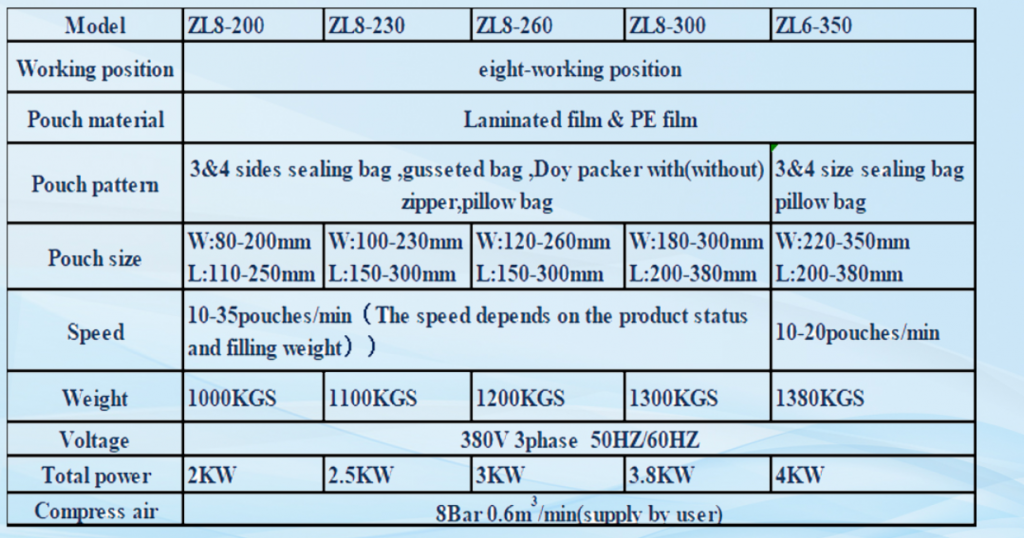 Ang buong makina kasama ang dalawang hanay ng paghahalo ng bomba para sa sopas at isang set na umiinog na bag na kumukuha ng pagpuno ng packing machine. Ang pangunahing makina ay kontrolado ng PLC at pinapatakbo sa pamamagitan ng touch screen. Gumagamit ng mga sikat na Electrical na accessories. Mataas na automation at madaling patakbuhin .Malawakang ginagamit ng iba't ibang industriya tulad ng Pang-araw-araw na kemikal, pagkain, hardware at iba pa