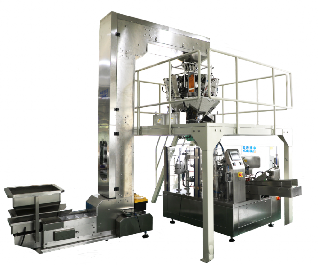 3. Pahalang Infeed conveyor suit para sa mga bag na may siper, max. maglagay ng 300pcs sa bawat oras.