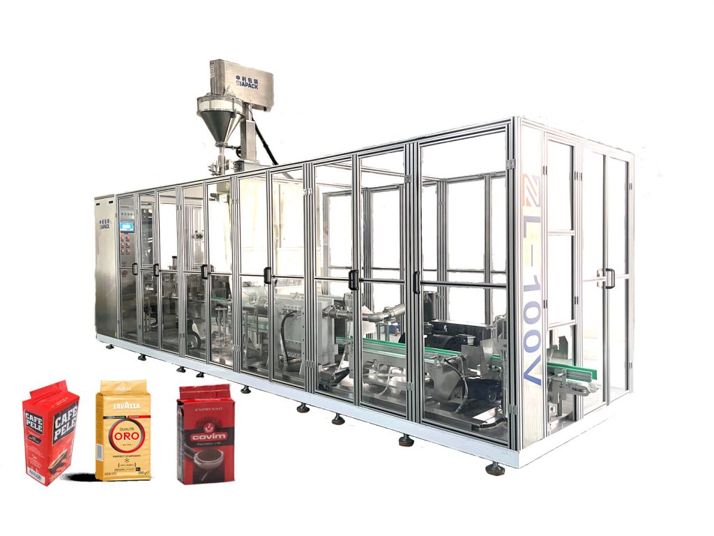 Ang makinang ito ay may kasamang isang set ZL520 vertical bag making packing and sealing machine .isang set ZL2000 double bucket weighing machine, Isang set ZL-100V vacuum packing machine, at isang set na output conveyor. Ang makinang ito ay malawakang ginagamit para sa pag-iimpake ng kemikal sa parmasya ng pagkain at iba pang produkto sa pulbos o maliit na butil. Tulad ng coffee powder , yeast powder at iba pa . Ang buong makina ay gumagamit ng pumping sa loob ng produkto sa vacuum . Napakataas ng vacuum degree at napakataas ng packing speed ay maaaring umabot ng 15bag/min . Napakaganda ng tapos na produkto at may mahabang istante buhay.