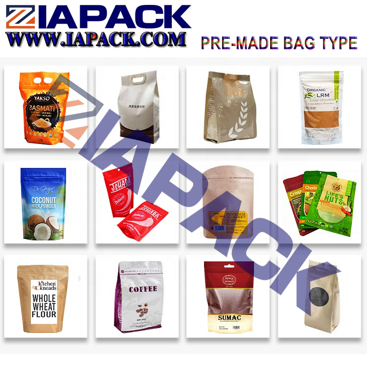 Malawakang application para sa timbangin ang punan ang seal packing solution para sa premade na supot para sa iba't ibang bigas, buto, kumpay, beans, asukal, popcorn, chips, nuts, pagkain ng alagang hayop, tsaa at metal o plastik na mga bahagi, feed ng materyal na auto, timbangin ang fill function ng selyo, atbp.