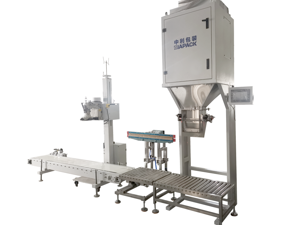 Kailangan ito ng dalawang tao para sa manu-manong suporta, ang isa ay para sa paglalagay ng bag sa ibaba ng discharging outlet, isa pa ang para sa suporta ng sewing machine sa pagtatakan ng bag.